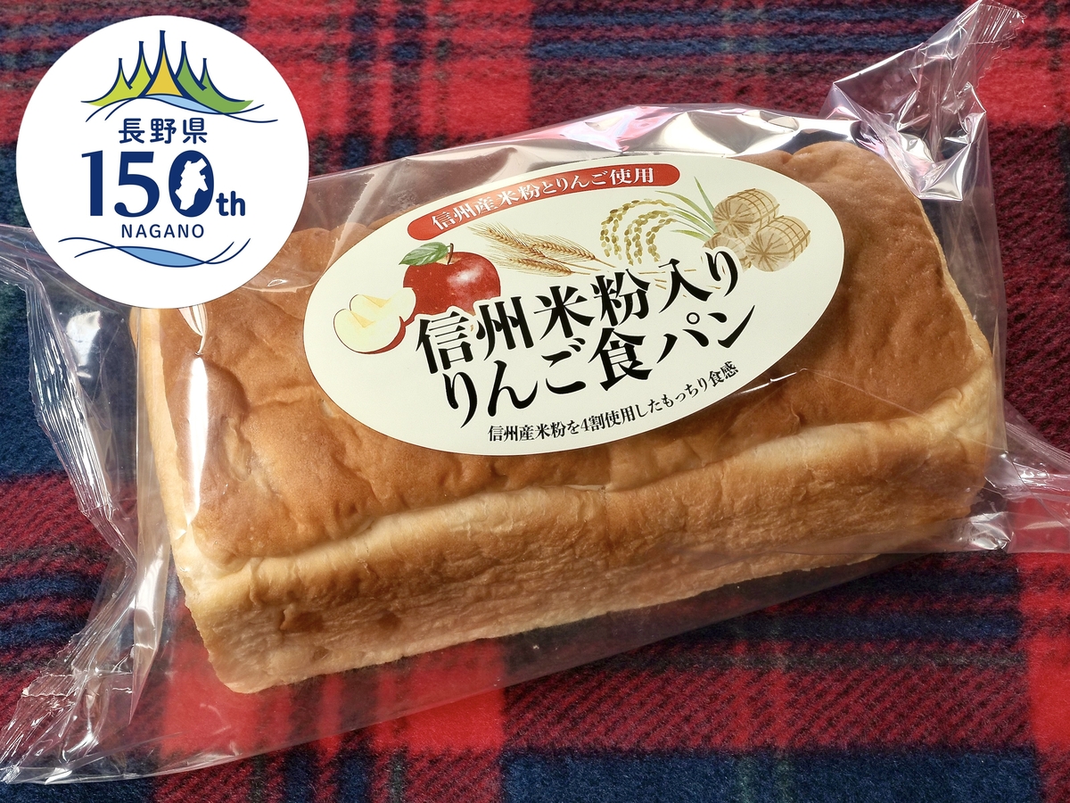 〇信州米粉入りりんご食パン1斤信州産米粉を45%配合した生地にダイスカットした信州りんごの砂糖漬けを混ぜて焼き上げた食パンです。米粉特有のもっちりとした食感とつぶつぶりんごの香りと甘さがふんわりと口の中に広がります。お手頃な食べきりサイズですが腹持ちが良く、少人数の食事や間食にもおすすめです。