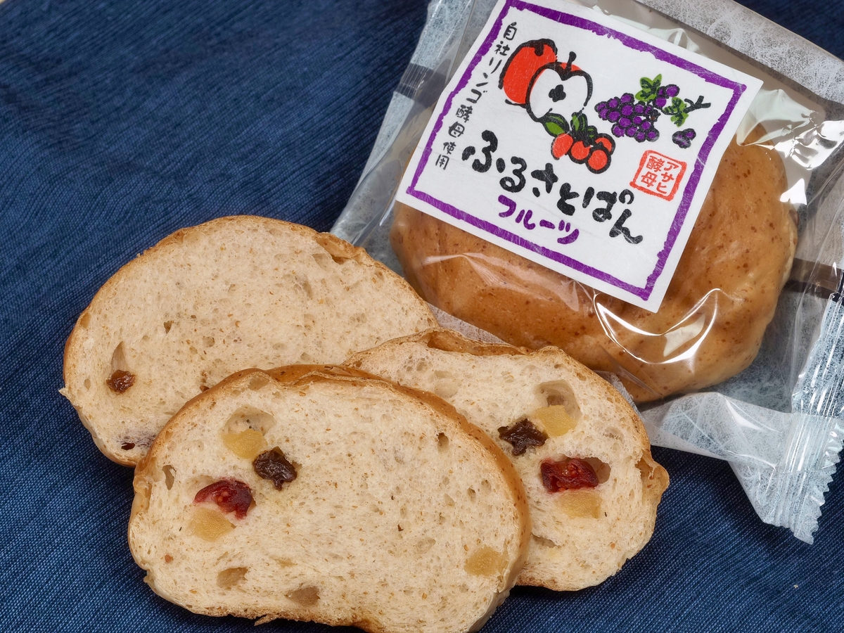 信州産リンゴダイスとドライフルーツを、じっくり発酵させた生地にたっぷり練りこみました。小麦胚芽のまろやかな風味が果物の甘酸っぱい美味しさをより一層引き立てます。